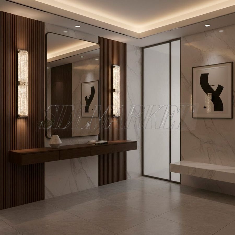 Высокое настенное бра из коллекции Spark, выполненное в элегантном цвете «хром», представляет собой идеальное сочетание современных технологий и ремесленного искусства. Основание из нержавеющей стали с качественным гальваническим покрытием служит надежной опорой для двух вертикальных плафонов из фактурного стекла ручной работы. Благодаря внушительной высоте 750 мм, этот светильник создает выразительную световую вертикаль, визуально приподнимая потолки и придавая интерьеру торжественность. Теплый свет с температурой 3000K и исключительная цветопередача CRI ≥ 90 гарантируют уютную атмосферу и безупречное отображение фактур в пространстве. Модель Spark станет великолепным решением для парного размещения у зеркал в ванной или прихожей, а также для акцентного освещения в гостиных и спальнях премиум-класса.