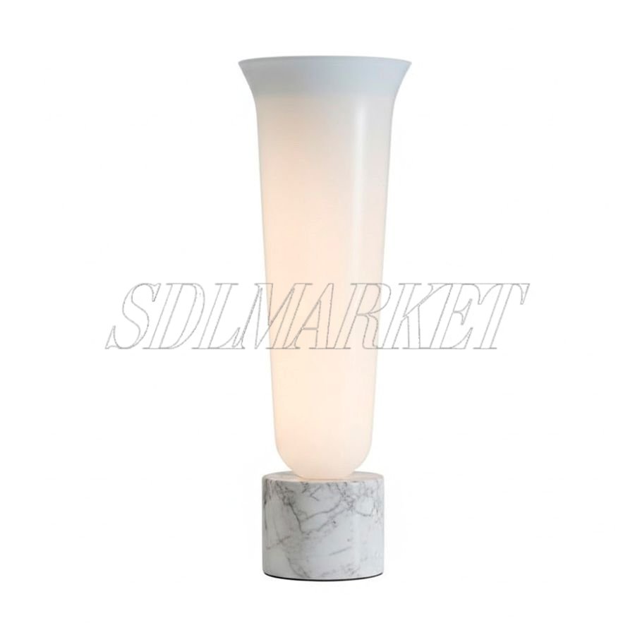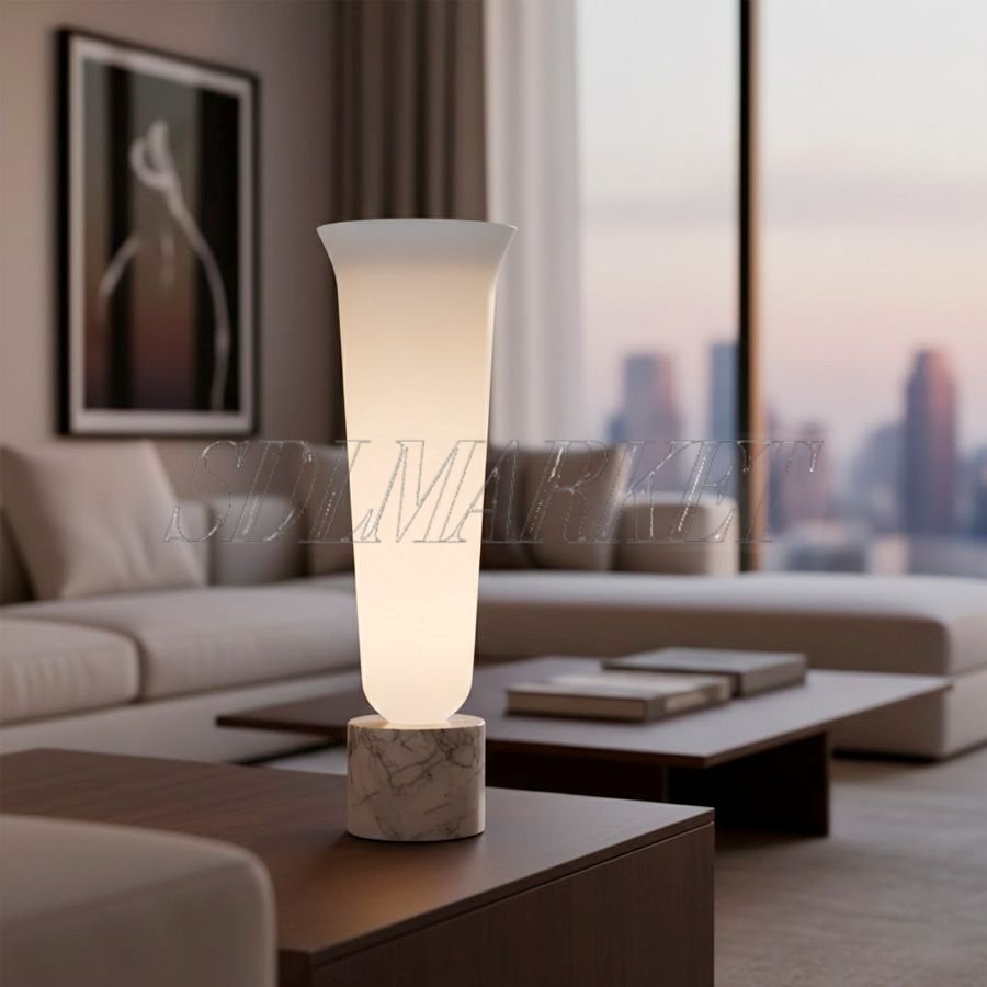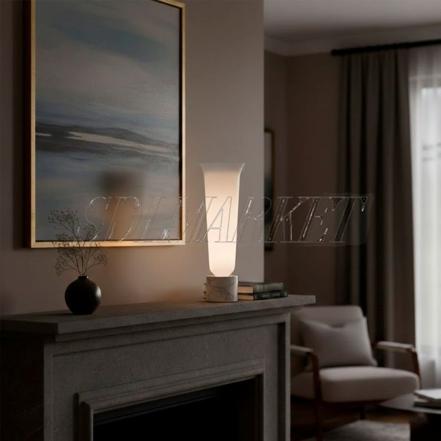 Эта дизайнерская настольная лампа из коллекции Blossom сочетает в себе монументальность мраморного основания и изящество плафона из белого нефритового стекла. Корпус, выполненный из высококачественной нержавеющей стали с гальваническим покрытием, гармонично дополняет мягкое свечение с цветовой температурой 3000K. Благодаря высокому индексу цветопередачи ≥ 90, светильник идеально подходит для создания уютной атмосферы в спальне, гостиной или на консоли в прихожей, становясь ключевым элементом современного интерьера.