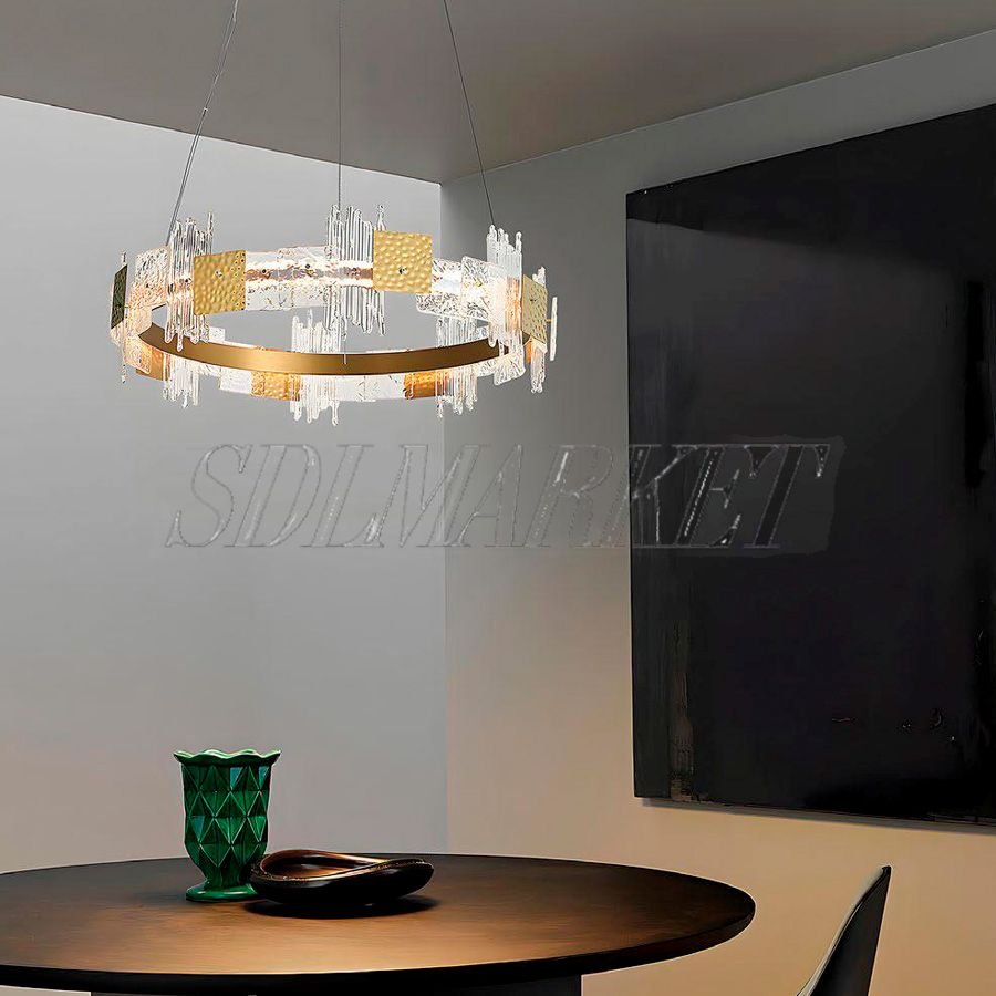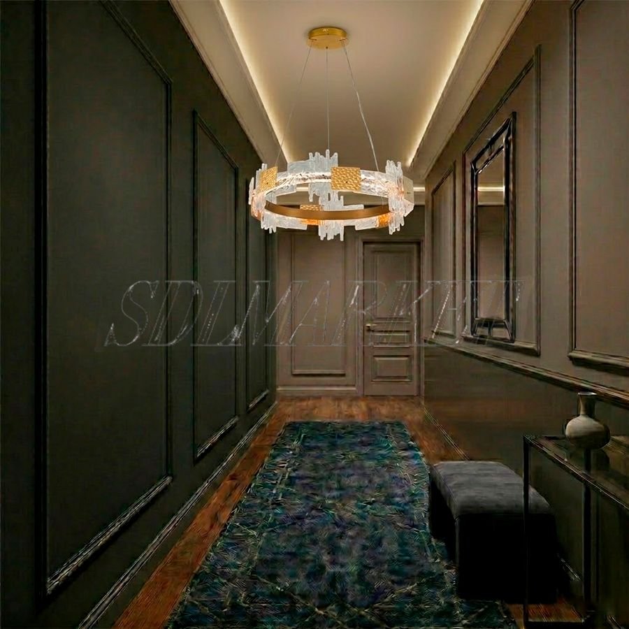 Компактная кольцевая люстра из коллекции Galla (арт. MC0100-003) диаметром 600 мм — это воплощение современной элегантности и ювелирной точности исполнения. Модель выполнена из высококачественного алюминия и нержавеющей стали с благородным гальваническим покрытием в оттенке «матовое золото» (Champagne Gold), которое идеально гармонирует с декоративными элементами из фактурного стекла ручной работы. Благодаря мощности 50 Вт, теплой цветовой температуре 3000К и профессиональному индексу цветопередачи (CRI ≥ 90), светильник создает мягкое и естественное освещение, становясь изысканным акцентом в интерьере спальни, уютной кухни или небольшой гостиной.