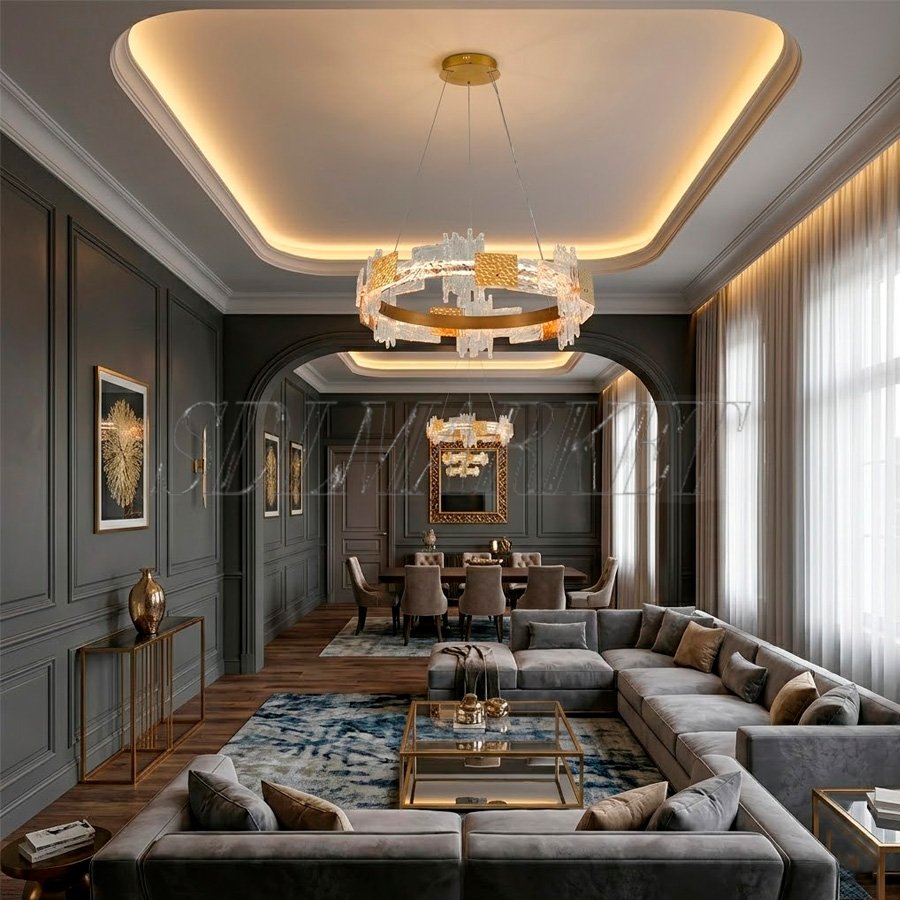 Элегантная круглая люстра из коллекции Galla (арт. MC0100-005) представляет собой гармоничное сочетание художественного стекла ручной работы и технологичного основания из алюминия и нержавеющей стали с изысканным гальваническим покрытием в цвете матовое золото (Champagne Gold). Благодаря внушительному диаметру 1000 мм и мощности 90 Вт, этот светильник становится центральным элементом интерьера, обеспечивая мягкое и уютное освещение с теплой температурой 3000 К и безупречной цветопередачей CRI ≥ 90. Продуманная конструкция и премиальные материалы делают данную модель идеальным выбором для современных гостиных и столовых зон, где требуется подчеркнуть статус и создать атмосферу исключительного комфорта.