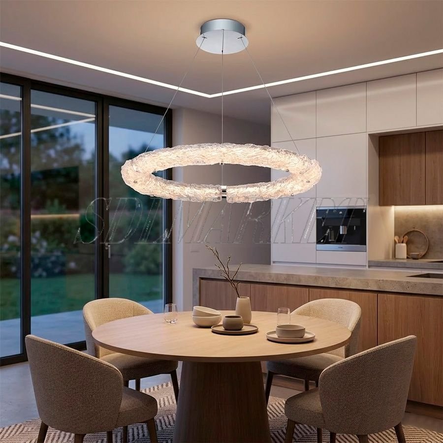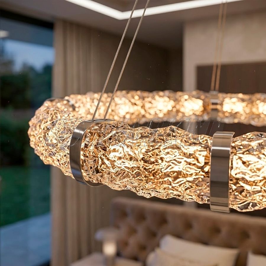 Подвесная люстра Glitter (артикул MC0080-011) диаметром 800 мм станет грандиозным акцентом в интерьере просторной гостиной или обеденной зоны, превращая пространство в зону высокой эстетики. Сочетание благородного зеркального хрома и фактурного стекла ручной работы превращает светильник в настоящий объект современного искусства, который притягивает взгляд и задает тон всему помещению. Модель оснащена надежным каркасом из нержавеющей стали с гальваническим покрытием и излучает комфортный теплый свет с температурой 3000 К, а благодаря высокому индексу цветопередачи (CRI ≥ 90) все детали вашего интерьера будут выглядеть естественно и выразительно даже в вечернее время. Эта дизайнерская подвесная люстра с экономичными LED-источниками света идеально дополнит современные интерьеры в стиле минимализм, модерн или ар-деко, наполняя дом атмосферой роскоши, уюта и безупречного стиля.