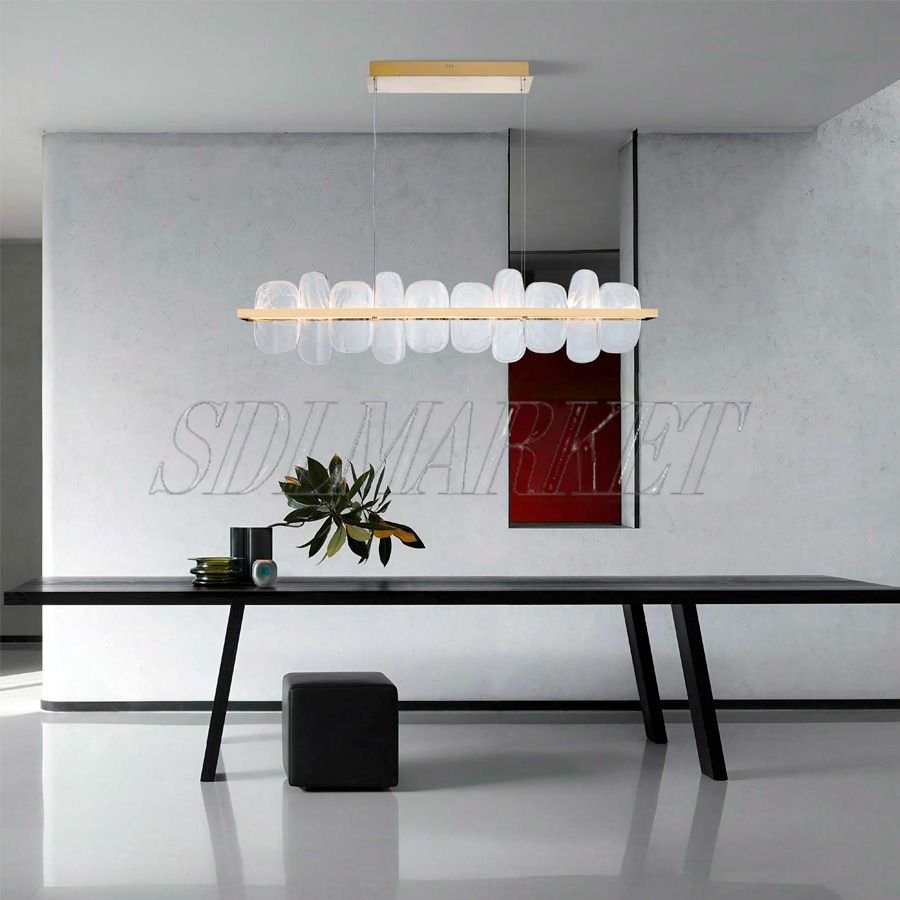 Линейная люстра MC0190-006 длиной 1500 мм — это торжество эстетики и масштаба в серии Ice and Fire. Величественный каркас из нержавеющей стали с премиальным гальваническим покрытием «зеркальное золото цвета шампанского» удерживает массив выразительных элементов из стекла ручной работы. Каждая стеклянная деталь уникальна и напоминает пластину льда, подсвеченную изнутри теплым «пламенем» встроенных LED-модулей. Благодаря высокому индексу цветопередачи CRI ≥ 90, люстра не просто освещает, а преображает пространство, сохраняя естественную глубину всех оттенков интерьера.