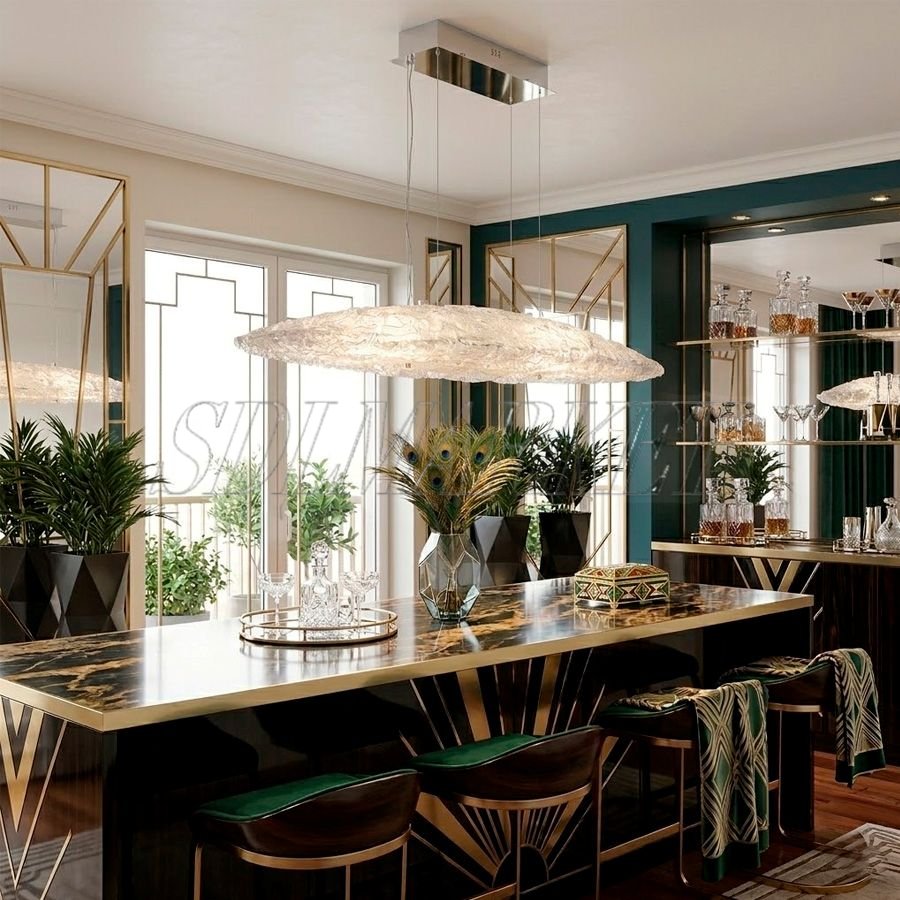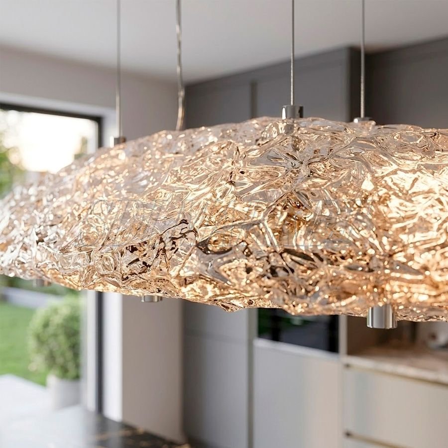Подвесной светильник из коллекции Glitter (артикул MC0080-009) — это эффектное сочетание современного дизайна и функциональности, созданное для того, чтобы стать центральным элементом интерьера. Светильник длиной 1200 мм выполнен из прочной нержавеющей стали с премиальным зеркальным хромированным покрытием и декорирован уникальным стеклом ручной работы, которое при включении создает мягкий, обволакивающий свет. Благодаря теплой цветовой температуре 3000К и высокому индексу цветопередачи (CRI ≥ 90), освещение максимально комфортно для глаз и естественно передает оттенки интерьера. Гармоничные пропорции 1200x280x120 мм делают эту модель идеальным выбором для акцентного освещения над обеденным столом, кухонным островом или в зоне гостиной, добавляя пространству нотку роскоши и уюта.