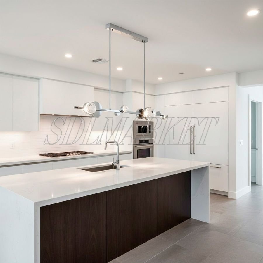 Линейный подвесной светильник из коллекции K9 Diamond — это воплощение изысканной геометрии и роскошного сияния, созданное для преображения современных обеденных зон и кухонных островов. Модель длиной 1200 мм выполнена в эстетике ар-деко: лаконичное основание из высококачественной нержавеющей стали с гальваническим покрытием «зеркальный хром» служит идеальным фоном для россыпи ограненных кристаллов премиум-класса K9. Благородная цветовая температура 3000K в сочетании с высоким индексом цветопередачи CRI ≥ 90 наполняет пространство мягким, естественным светом, превращая светильник в центральный декоративный акцент интерьера.