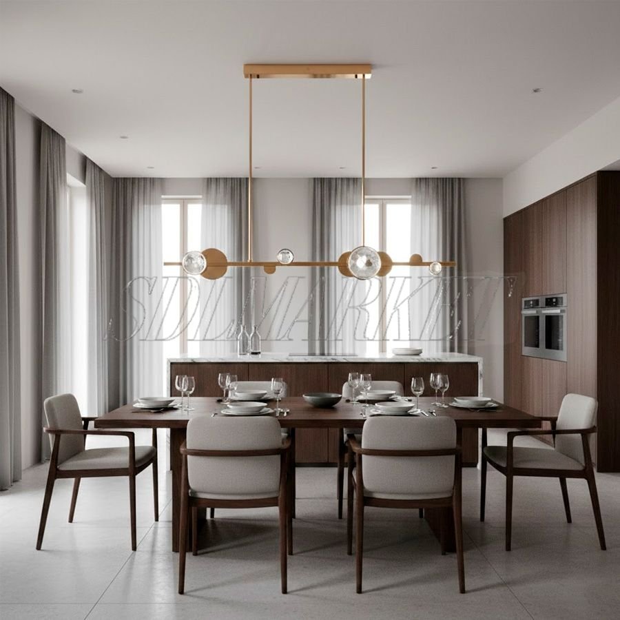 Линейный подвесной светильник из коллекции K9 Diamond в исполнении «матовое золото цвета шампанского» — это воплощение современной классики и утонченного ар-деко. Благородный оттенок каркаса, достигнутый методом качественной гальванизации нержавеющей стали, придает интерьеру мягкое сияние и визуальное тепло. Геометрический ритм крупных дисков из кристалла K9 в сочетании с золотистой основой создает изысканную игру света над обеденным столом или кухонным островом. При мощности 40 Вт и цветовой температуре 3000K светильник наполняет пространство уютным светом, а высокий индекс цветопередачи CRI ≥ 90 подчеркивает роскошь фактур и естественность оттенков вашего дома.
