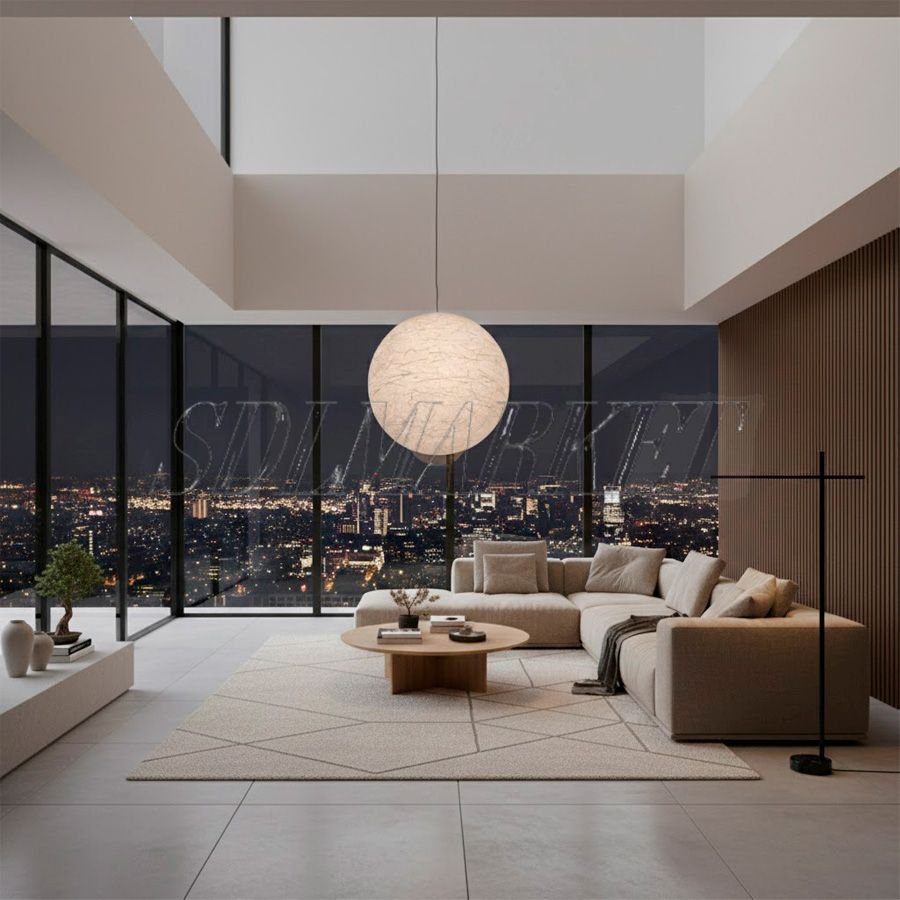 Этот подвесной светильник диаметром 600 мм представляет собой элегантное сочетание современного минимализма и уютной эстетики Japandi, где сферический плафон из инновационного пластика с шелковой фактурой создает мягкое, обволакивающее свечение. Уникальная текстура с тонкими хаотичными линиями превращает прибор в выразительный арт-объект, а внушительная длина провода в 2800 мм позволяет легко адаптировать его для просторных помещений с высокими потолками.