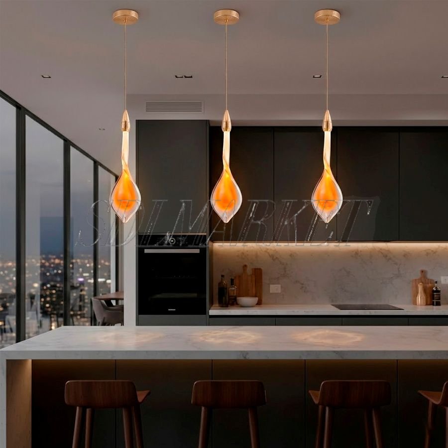 Одиночный подвесной светильник Sunset MC0090-002 — это утонченный элемент светового дизайна, выполненный из нержавеющей стали с качественным гальваническим покрытием в цвете «зеркальное шампанское золото» и дополненный изящным плафоном из художественного handmade стекла. Компактный LED-модуль мощностью 3 Вт излучает комфортный теплый свет с температурой 3000K и высоким индексом цветопередачи CRI≥90, что позволяет максимально естественно передать оттенки окружающего интерьера. Этот стильный светильник идеально подходит для локальной подсветки прикроватных зон, небольших барных стоек или создания эффектных каскадных композиций, становясь завершающим штрихом в интерьерах, где ценится внимание к деталям и премиальное качество исполнения.