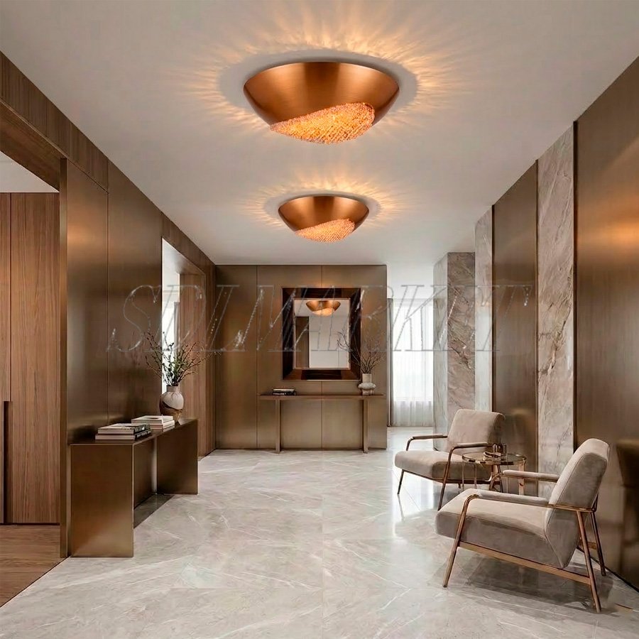 Потолочный светильник Angel`s Eyes VL0130-004 от бренда Vele Luce — это воплощение изысканности, сочетающее в себе благородство отделки Gold foil (золотая фольга) и ослепительный блеск боросиликатного корончатого стекла (K9 Crystal). Благодаря современному дизайну и теплой цветовой температуре 3000 К, эта модель идеально подходит для создания уютной и статусной атмосферы в гостиной, спальне или просторном холле. Компактные размеры D430/H80 мм позволяют устанавливать светильник в помещениях со стандартными потолками, обеспечивая мягкое, но эффективное освещение. Металлический корпус в сочетании с хрустальными вставками делает светильник не просто источником света, а центральным элементом декора, подчеркивающим премиальный стиль вашего интерьера.