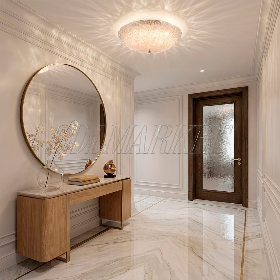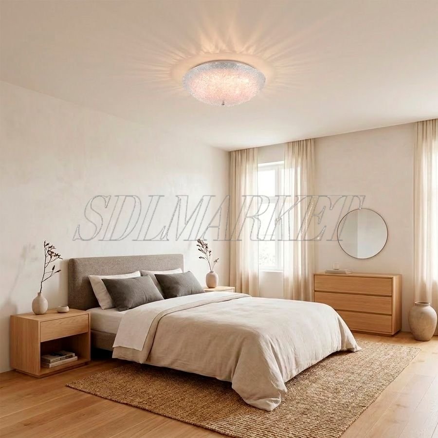 Потолочный светильник из коллекции Glitter (артикул MC0080-006) — это воплощение современной элегантности и функционального искусства. Модель диаметром 500 мм изготовлена из нержавеющей стали с безупречным гальваническим покрытием в цвете «зеркальный хром», который идеально сочетается с массивным плафоном из фактурного стекла ручной работы. Теплый свет с температурой 3000 К и исключительным индексом цветопередачи CRI ≥ 90 обеспечивает естественное отображение оттенков и создает атмосферу уюта. Уникальная отделка стекла, напоминающая искрящийся лед, делает этот потолочный светильник центральным декоративным элементом интерьера, обеспечивая при этом равномерное и мягкое основное освещение для помещений средней площади в стилях неоклассика, минимализм или ар-деко.
