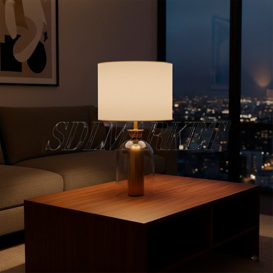 Эта элегантная настольная лампа приковывает взгляд благодаря необычному эффекту левитации: её золотистый металлический цилиндр заключен в прозрачный стеклянный купол и визуально парит, не касаясь поверхности стола. Минималистичный белый абажур мягко рассеивает свет, подчеркивая благородное сочетание стекла и латуни в современном интерьере.