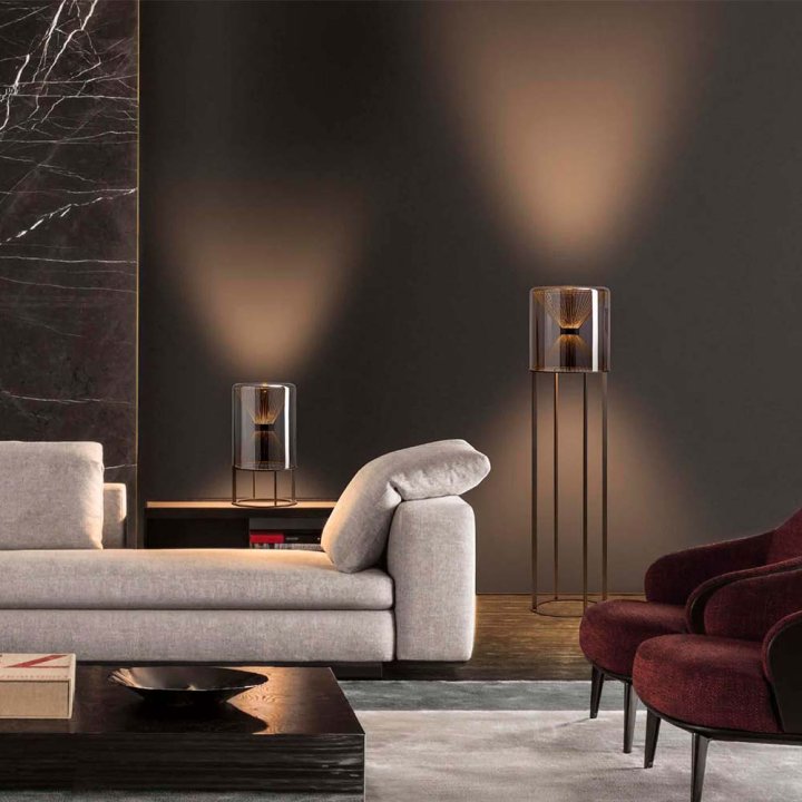 Дизайн этих светильников заключается в том, чтобы материализовать свет и показать форму света через провод. Лампа разделена на внутреннюю и внешнюю части. Внешняя часть представляет собой геометрический стеклянный абажур. Внутренний провод символизирует свет. Источник света освещает металлический контур и стеклянный абажур соответственно, формируя двойное ощущение света.