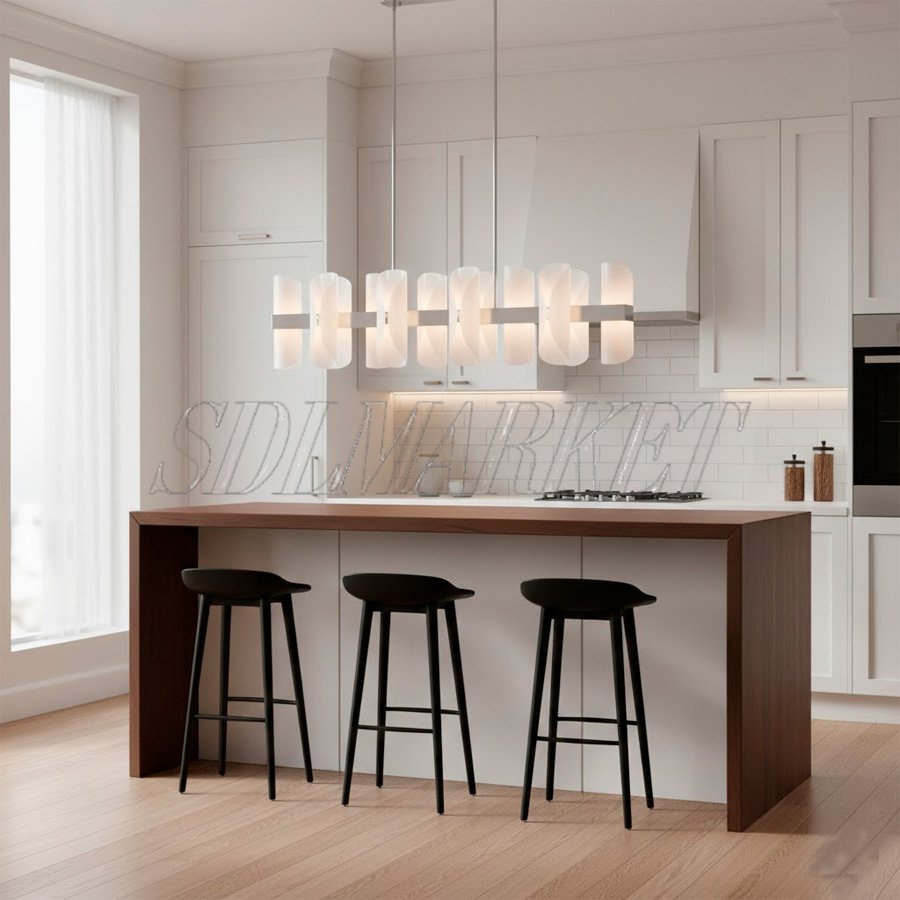 Элегантная дизайнерская люстра с горизонтальной штангой из нержавеющей стали с износостойким гальванопокрытием и плафонами из стекла ручной работы станет центральным акцентом вашего интерьера. Модель обеспечивает мягкое, комфортное освещение с теплой цветовой температурой 3000 К и высоким индексом цветопередачи (CRI ≥ 90), что гарантирует естественное отображение оттенков в пространстве. Сочетание благородных материалов и продуманных характеристик делает этот светильник идеальным выбором для оформления обеденной зоны или кухни в стиле минимализм, наполняя комнату атмосферой современной роскоши и уюта.