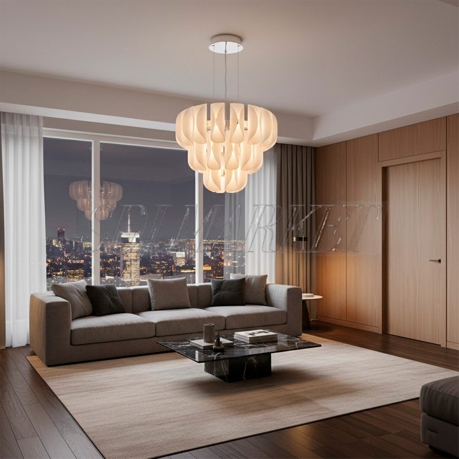 Эта элегантная многослойная люстра, выполненная в мягких светлых тонах, станет безупречным визуальным центром вашей спальни или зоны отдыха. Благодаря своей уникальной форме, напоминающей раскрывающийся бутон, светильник создает мягкое, рассеянное освещение, которое идеально дополняет интерьеры в стиле минимализм или Japandi. Конструкция из изящно изогнутых матовых лепестков формирует сложный световой рисунок, подчеркивая атмосферу спокойствия и уюта. Такой дизайн гармонично сочетается с благородными материалами, такими как натуральное дерево и качественный текстиль, превращая комнату в пространство, наполненное светом и легкостью.