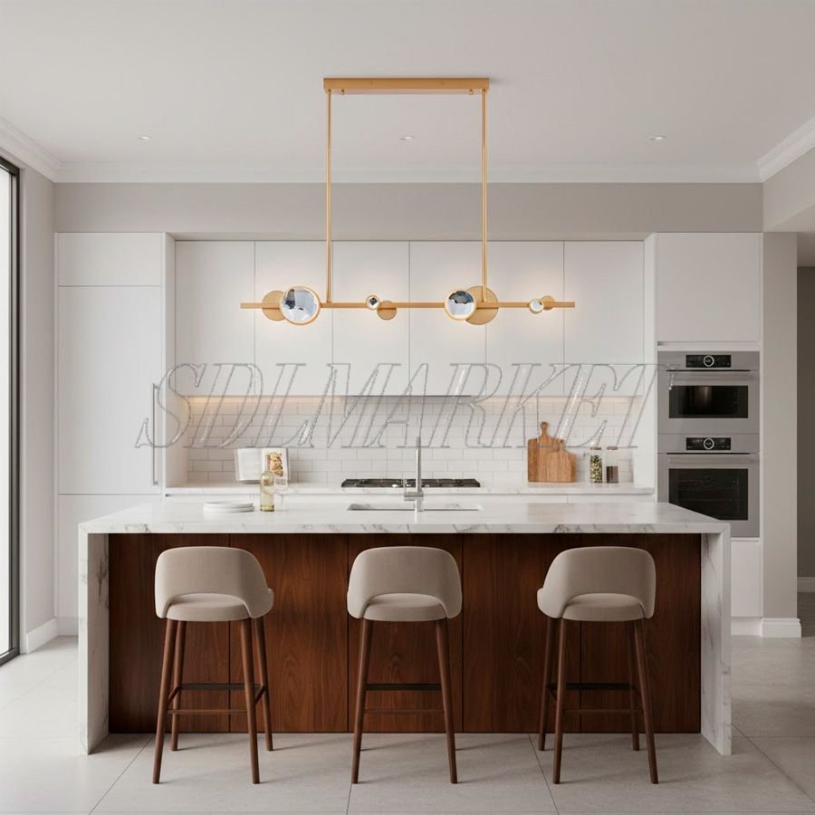 Линейный подвесной светильник из коллекции K9 Diamond в исполнении «матовое золото цвета шампанского» — это воплощение современной классики и утонченного ар-деко. Благородный оттенок каркаса, достигнутый методом качественной гальванизации нержавеющей стали, придает интерьеру мягкое сияние и визуальное тепло. Геометрический ритм крупных дисков из кристалла K9 в сочетании с золотистой основой создает изысканную игру света над обеденным столом или кухонным островом. При мощности 40 Вт и цветовой температуре 3000K светильник наполняет пространство уютным светом, а высокий индекс цветопередачи CRI ≥ 90 подчеркивает роскошь фактур и естественность оттенков вашего дома.