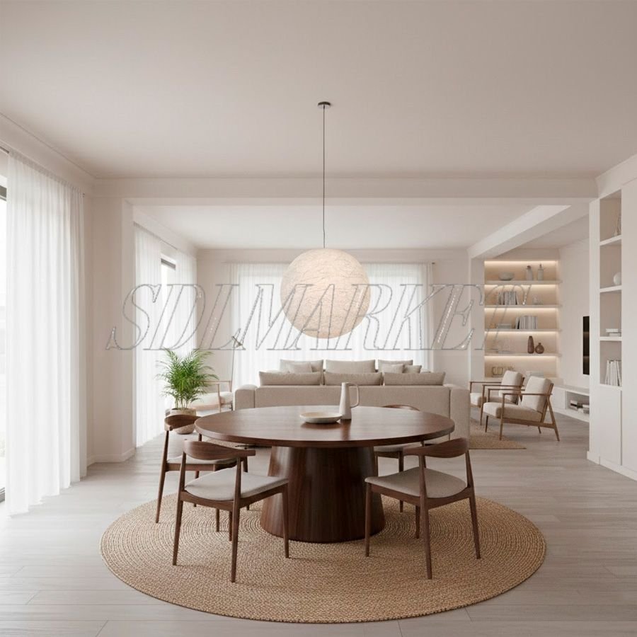 Этот подвесной светильник диаметром 600 мм представляет собой элегантное сочетание современного минимализма и уютной эстетики Japandi, где сферический плафон из инновационного пластика с шелковой фактурой создает мягкое, обволакивающее свечение. Уникальная текстура с тонкими хаотичными линиями превращает прибор в выразительный арт-объект, а внушительная длина провода в 2800 мм позволяет легко адаптировать его для просторных помещений с высокими потолками.